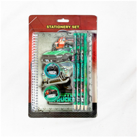 7 pcs stationery sets, 4pcs HB, 1pc eraer, 1pc sharpner, 1pc spiral notebook.